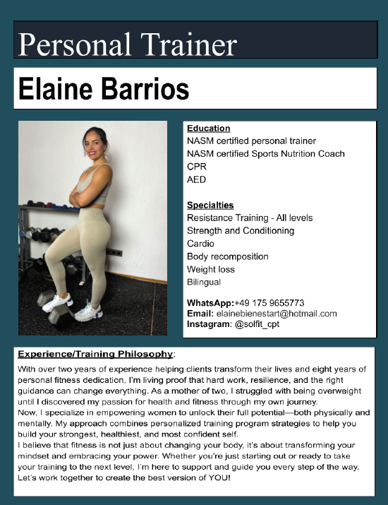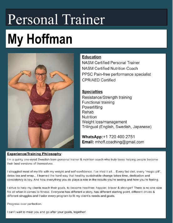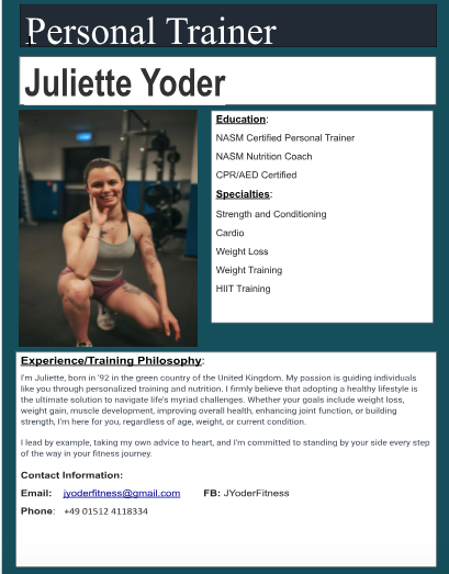 Each one brings a unique set of skills and expertise to our organization through their extensive knowledge and expertise in fitness. After you decide which personal trainer you would like to train with, please contact them directly. Personal Trainer contact information is listed at the bottom of each Bio as well as through a click to text button.
